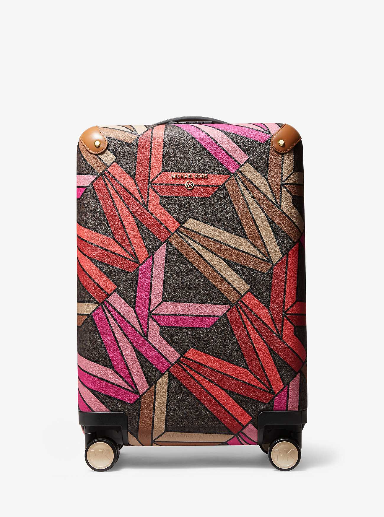 Stand out from the crowd with this graphic canvas suitcase: the definition of jet-set style. Complete with reinforced leather corners and sleek hardware, this glamorous carry-on features 360-spinning wheels and opens to a compartmented interior that will keep your essentials in place during any flight.