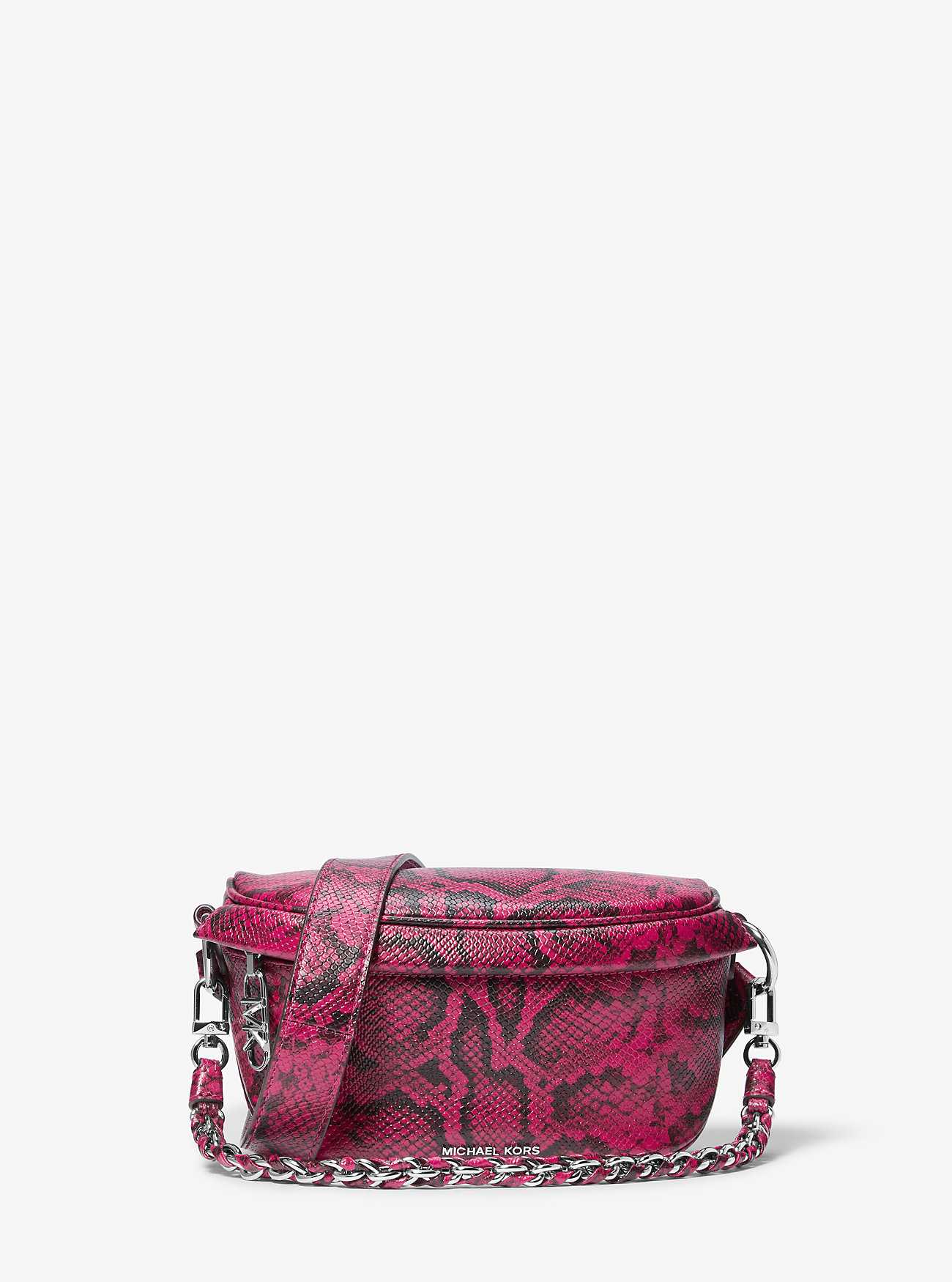 Introducing our beloved Slater sling pack, reimagined in a new and compact silhouette. Featuring the iconic removable braided chain strap, this modern messenger bag is crafted from snake-embossed leather for a refined sensibility. We love how the high-shine hardware accents add understated polish.