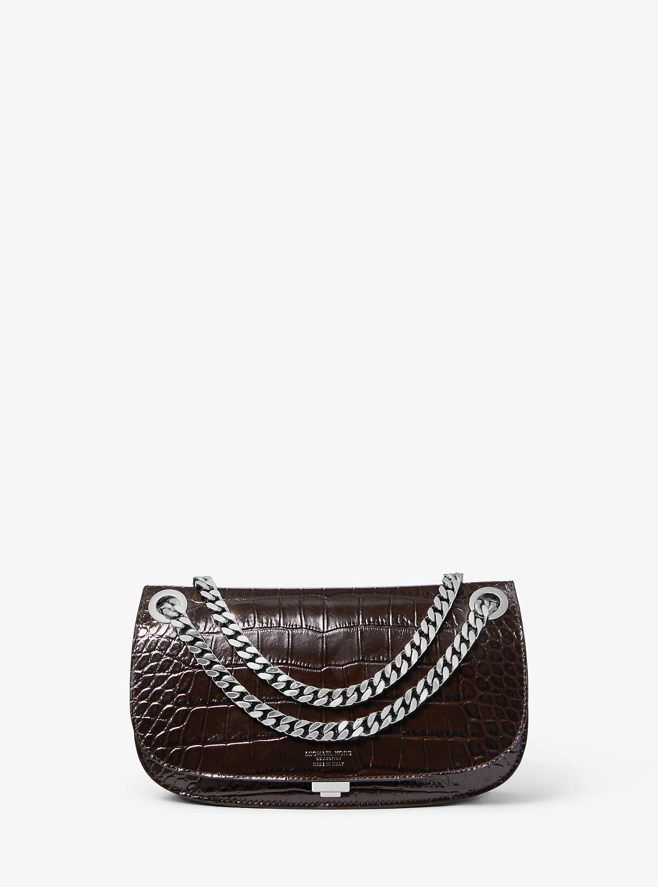 Crafted in Italy from crocodile-embossed leather, our coveted Christie bag is cut in a slim envelope silhouette and features chain-link straps for a tough-luxe finish. Make it your go-to companion on nights out.