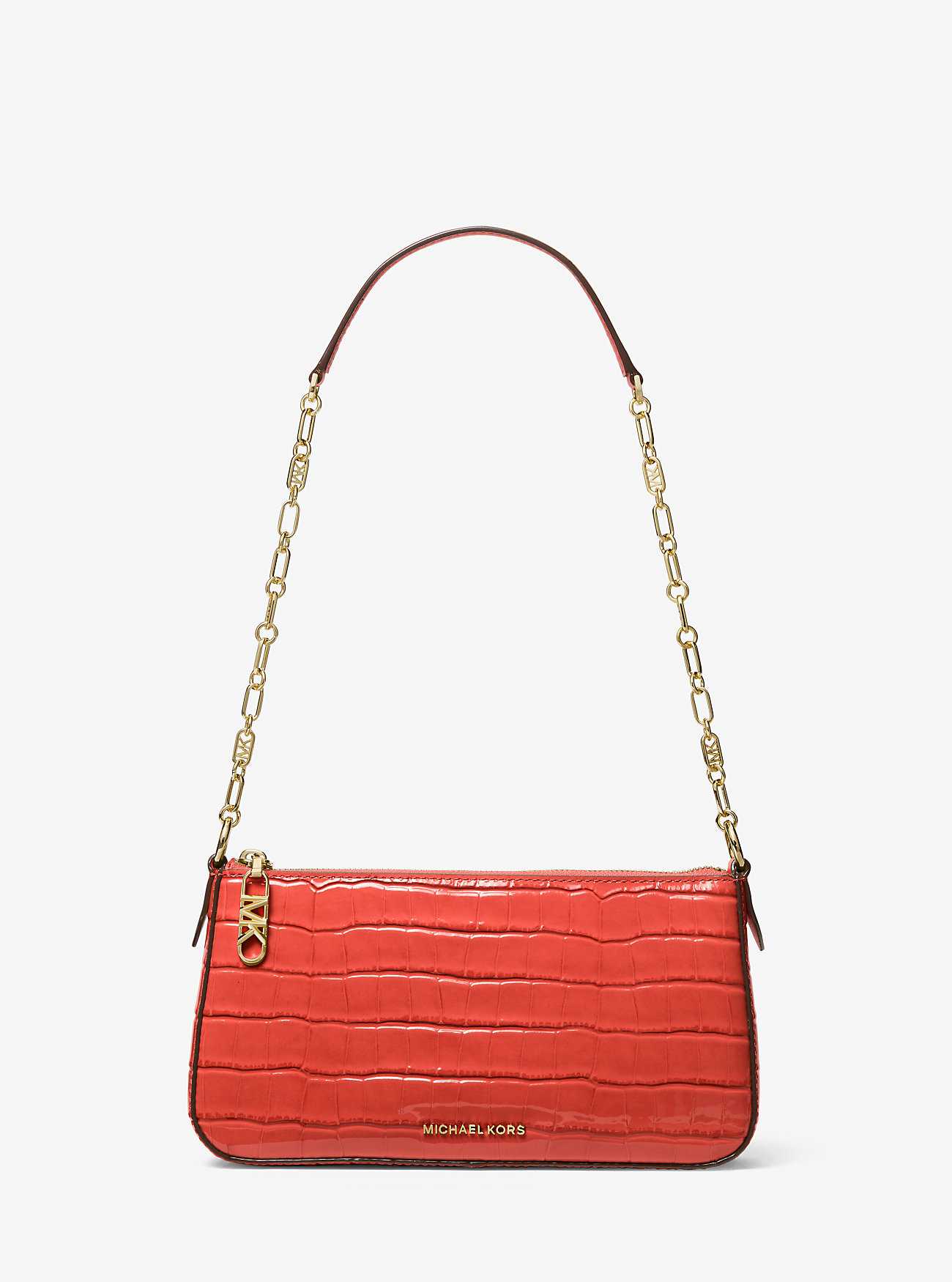 The Empire pochette bag is an everyday essential—and the epitome of timeless sophistication. Made from crocodile embossed leather with a patent finish, the compact silhouette fits your phone, cardholder, sunglasses and a little extra. Match the rest of your accessories to the gold-tone chain strap.
