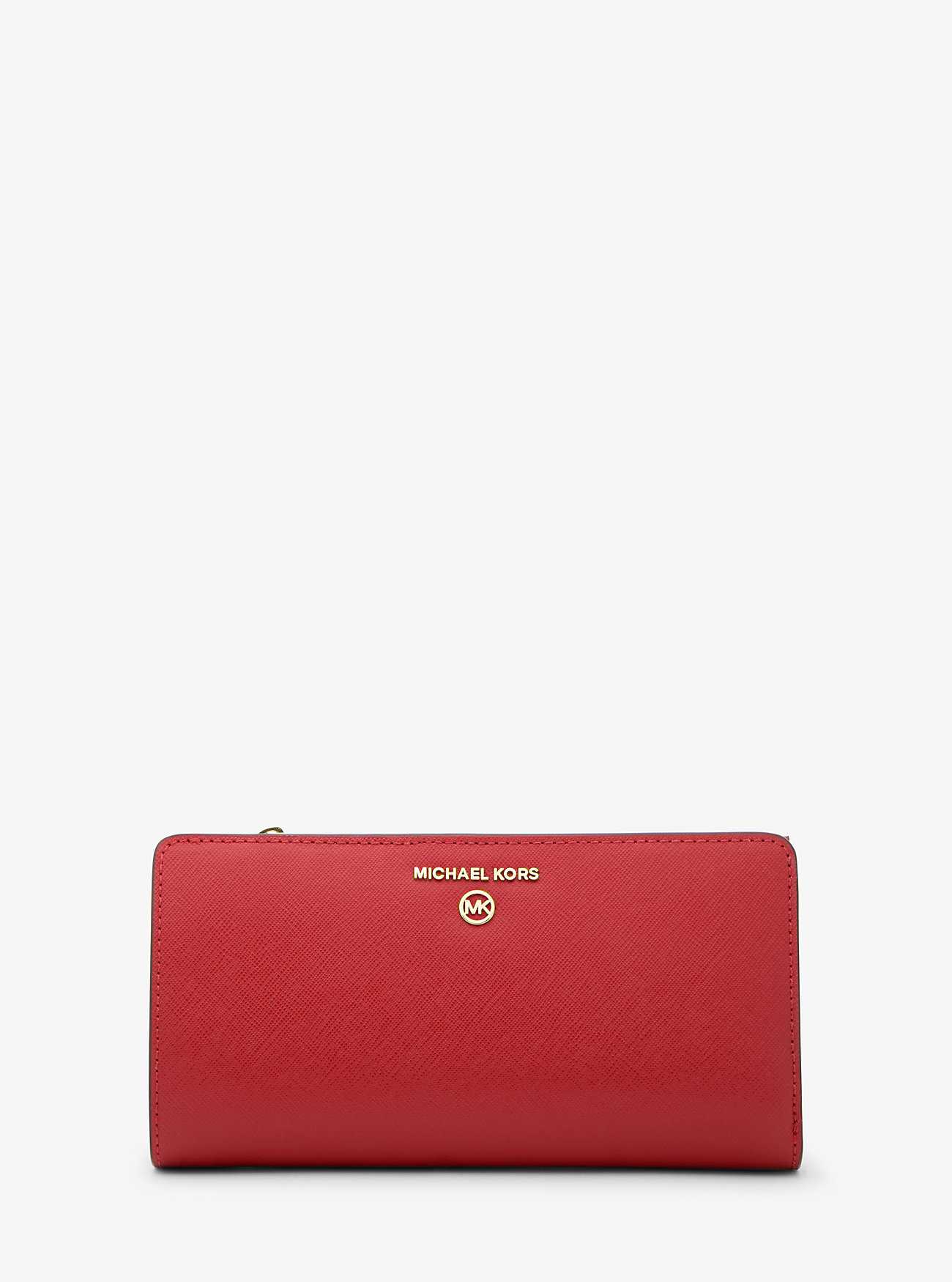 Polish meets practicality in this continental wallet. Crafted from Saffiano leather with luxe hardware, it features an interior compartment with multiple card slots and pockets and a secure zip closure to keep them safely stored. Slip it into your tote, or carry it solo as a casual clutch.