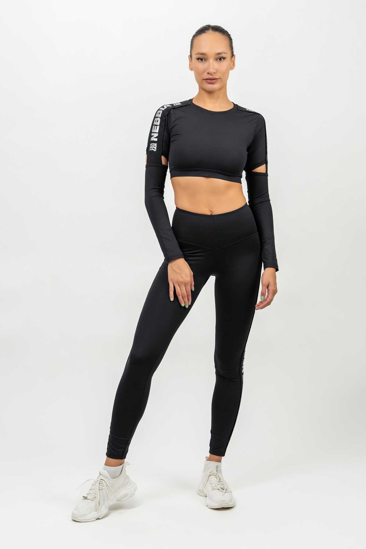 This black crop top is a timeless piece of your fitness wardrobe. The favourite length, sophisticated design and original combination of black and silver are the reasons why you will be 100% satisfied with your new fitness top. In addition, its design makes it truly multifunctional – you can wear it to training, but also to an evening party. It’s up to you! We guarantee you’ll feel amazing in it during every activity!