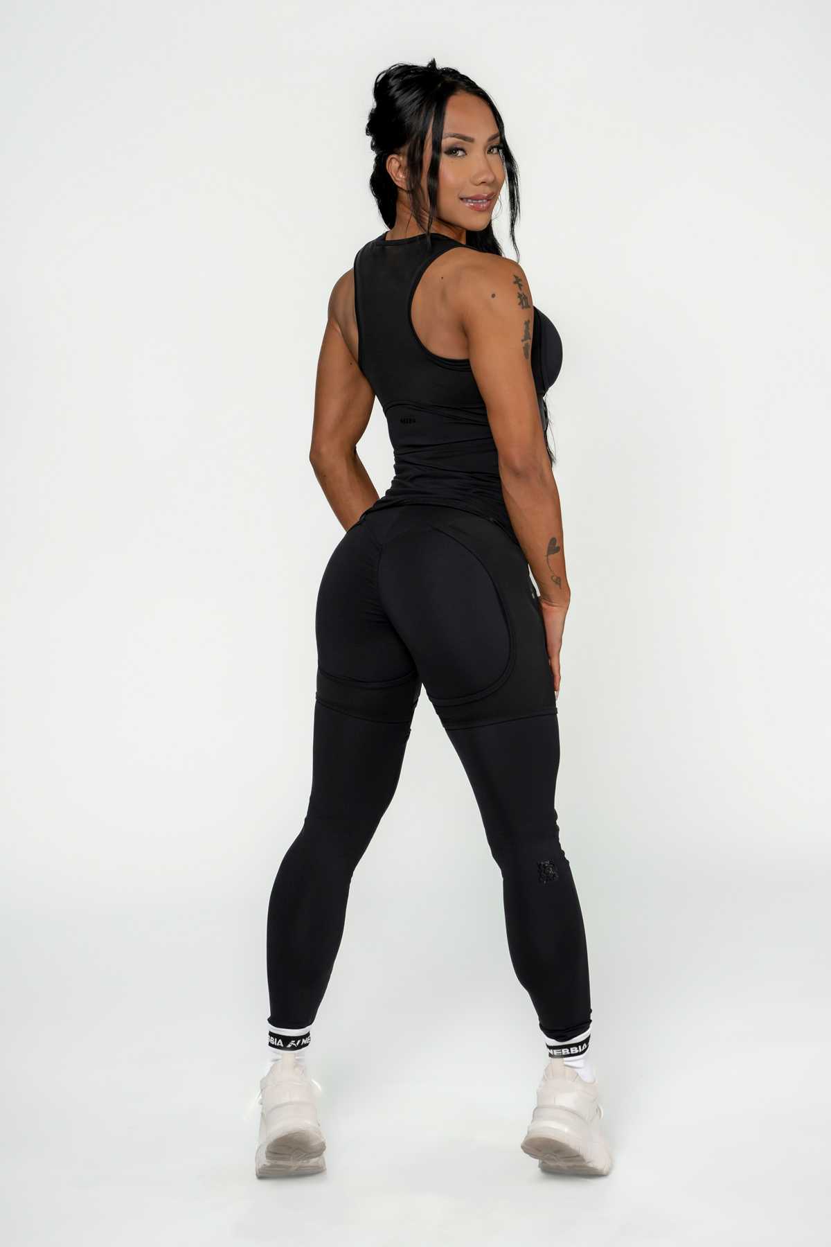 The combination of fabric and breathable mesh ensures that you won't overheat during your workout. They have a high waistband and additional reinforcement on the sides, allowing you to confidently perform squats and lunges without the constant need to adjust them. Thanks to the scrunch butt effect, the leggings provide a perfect fit and shape the butt well, making them a must-have addition to your wardrobe!