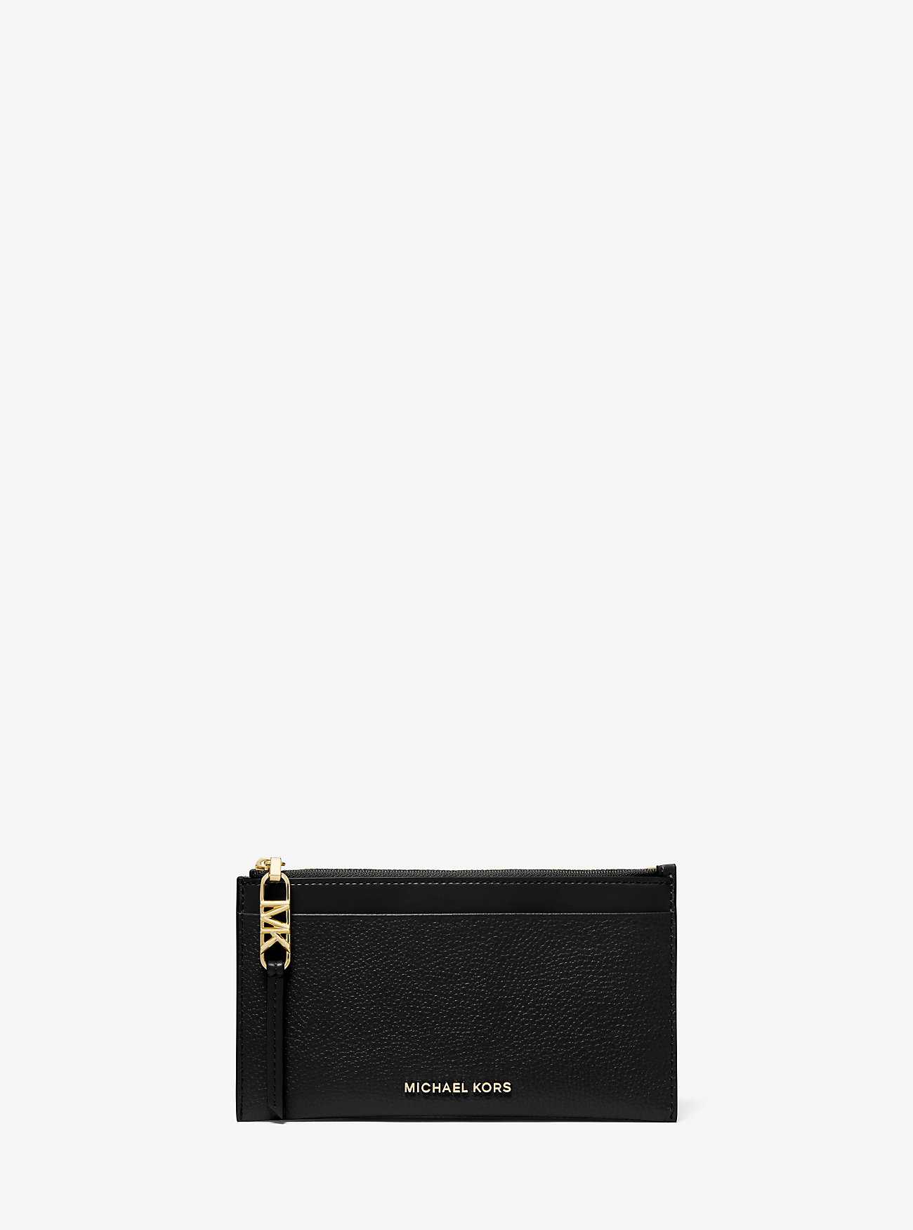 Polished and pragmatic, this slim style is an elevated alternative to traditional card cases. Accented with our Empire hardware for a hint of glamour, it’s crafted from pebbled leather and features a pocketed exterior for your cards, while a zip-fastened interior compartment offers additional storage for coins and cash. Slip it into your favorite tote.