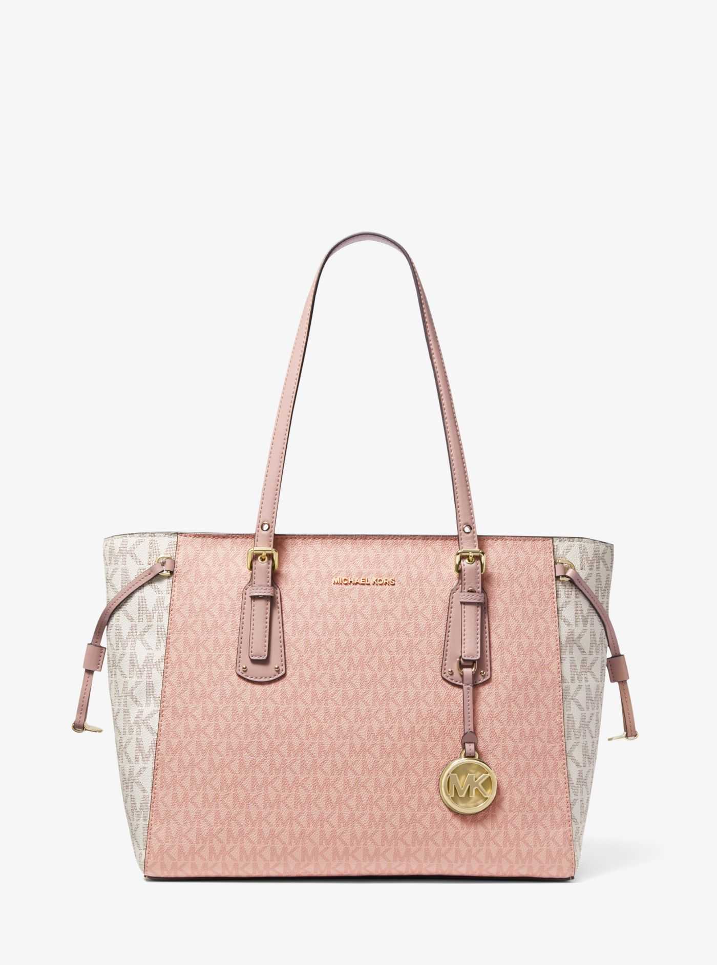 Crafted in color-blocked logo print, the Voyager tote bag features adjustable shoulder straps and gusset ties for everyday versatility. Its signature design promises everlasting appeal, while refined hardware lends a sophisticated finish.
